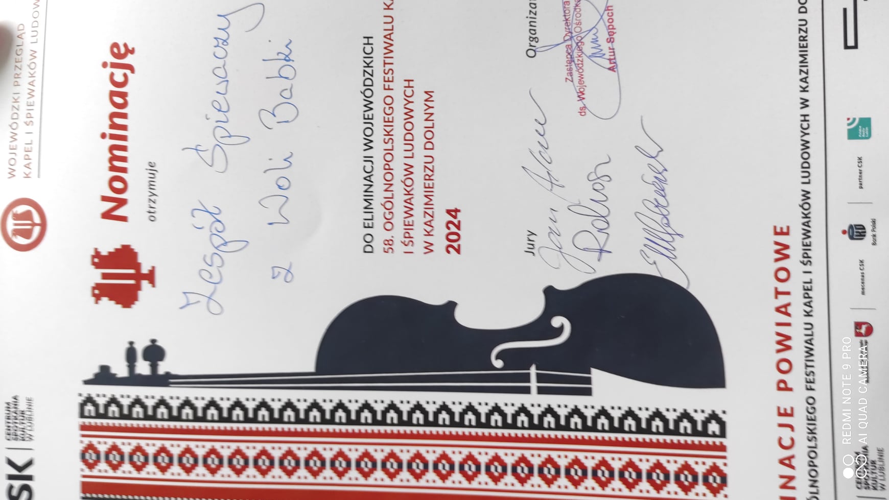 Żółkiewka 2024 – Nominacje do Eliminacji Wojewódzkich 58. Festiwalu Ogólnopolskiego Kapel i Śpiewaków Ludowych w Kazimierzu Dolnym, otrzymały zespoły z naszej gminy