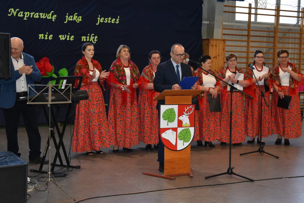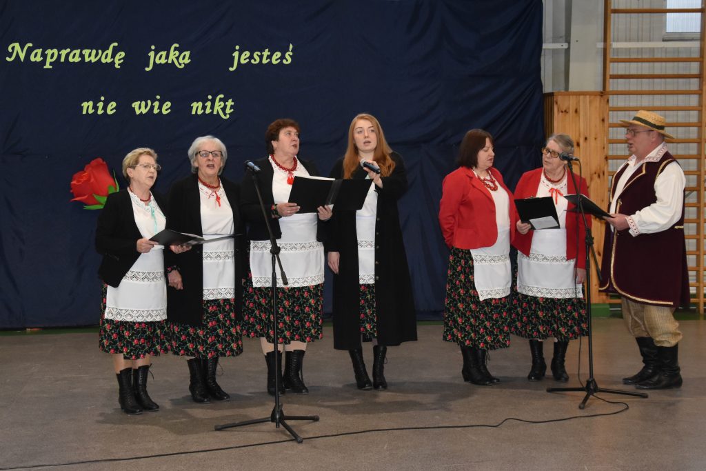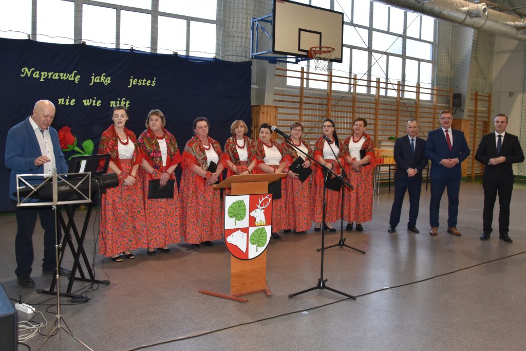 Uroczystość rozpoczął występ zespołu „Z Woli Babki”, wprowadzając wszystkich w radosny nastrój. Następnie Dyrektor Gminnego Ośrodka Kultury – Dariusz Zawada – powitał wszystkie Panie oraz licznie przybyłych gości.|