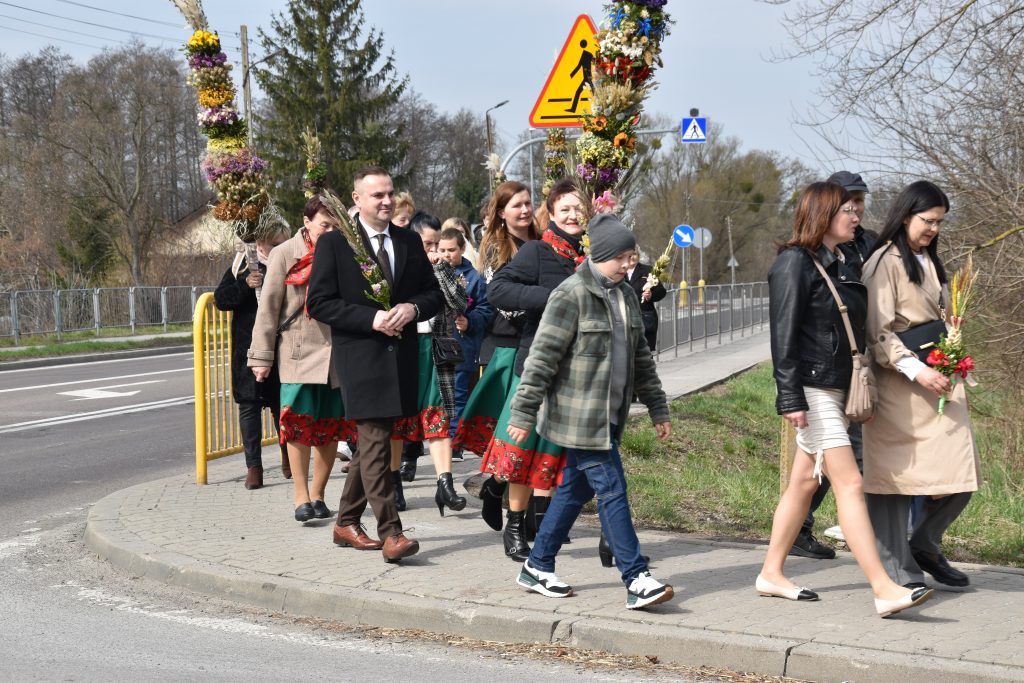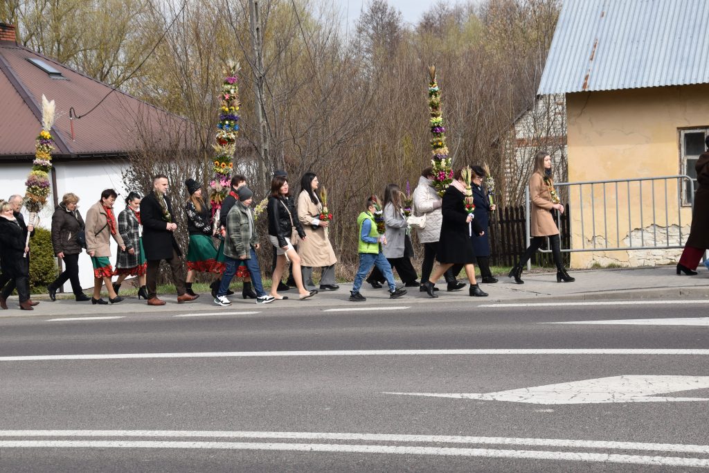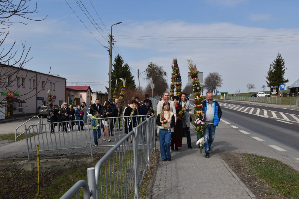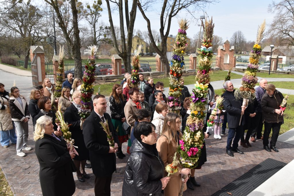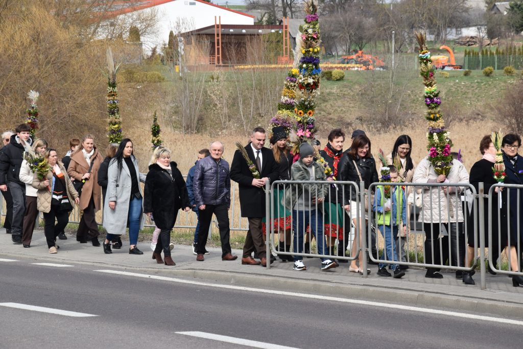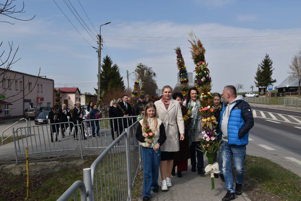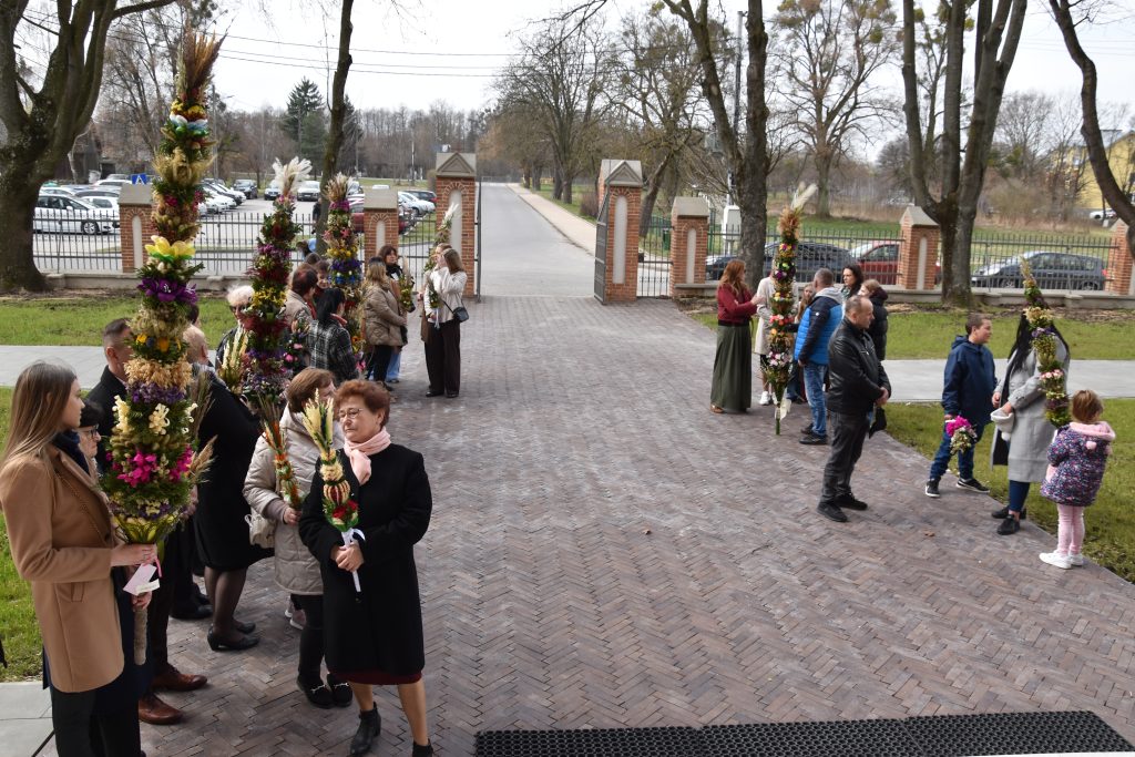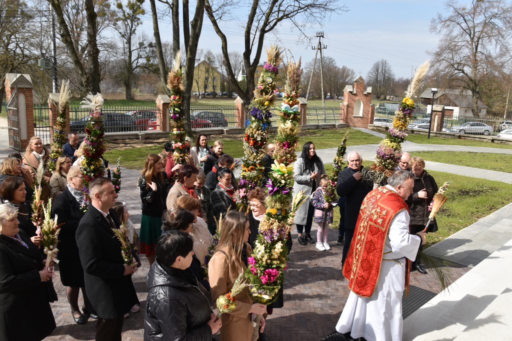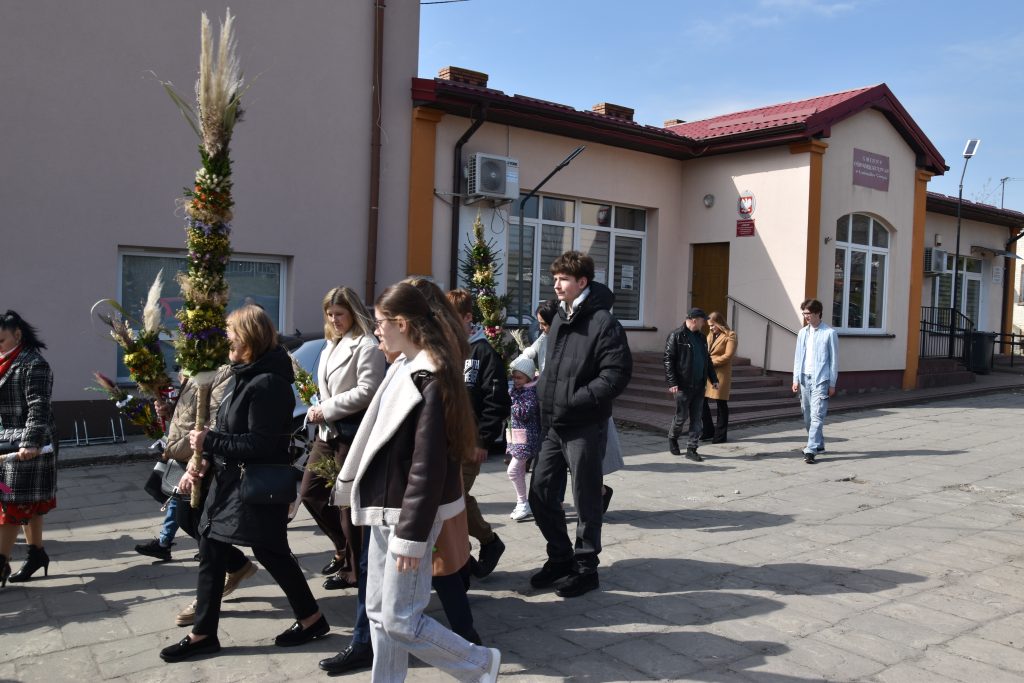 spod Gminnego Ośrodka Kultury w Łopienniku Górnym wyruszył uroczysty przemarsz z wykonanymi palmami do kościoła parafialnego pw. św. Bartłomieja Apostoła. Tam odbyło się ich poświęcenie oraz uroczyste wprowadzenie do świątyni.