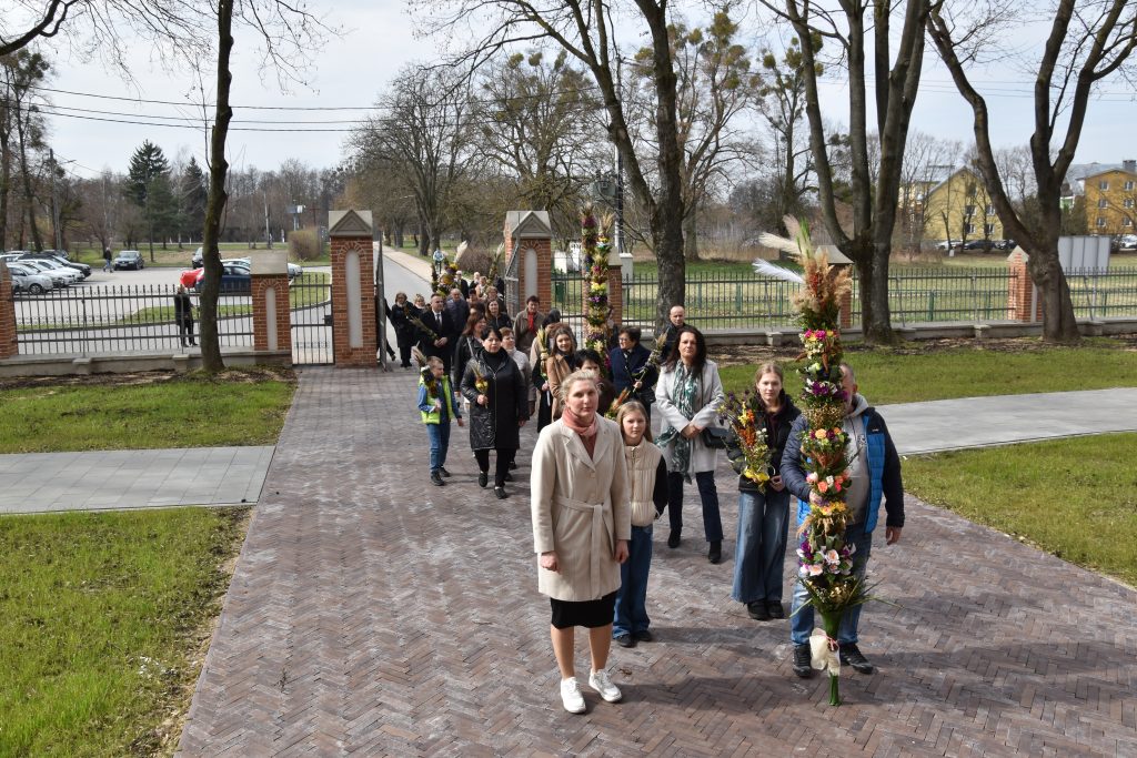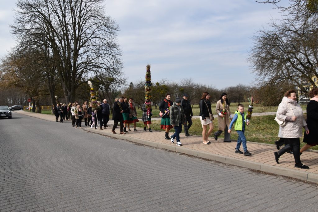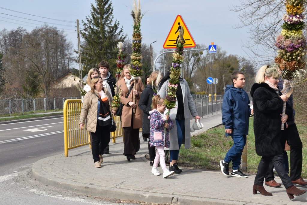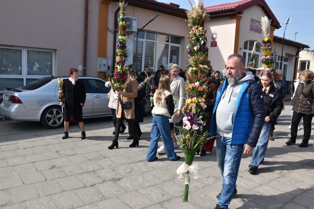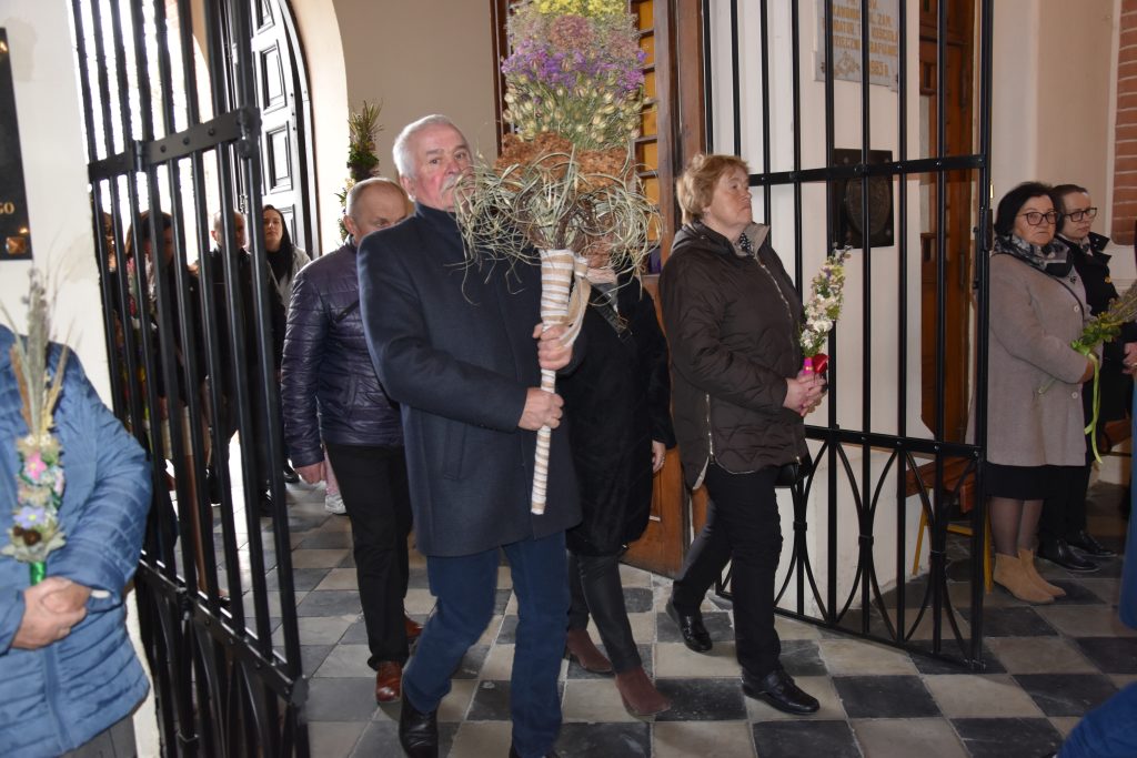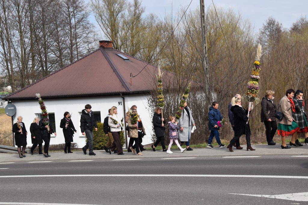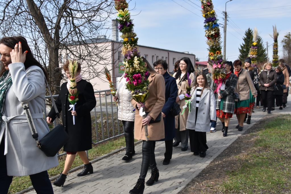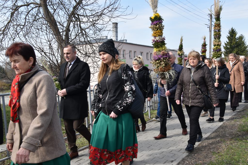 spod Gminnego Ośrodka Kultury w Łopienniku Górnym wyruszył uroczysty przemarsz z wykonanymi palmami do kościoła parafialnego pw. św. Bartłomieja Apostoła. Tam odbyło się ich poświęcenie oraz uroczyste wprowadzenie do świątyni.