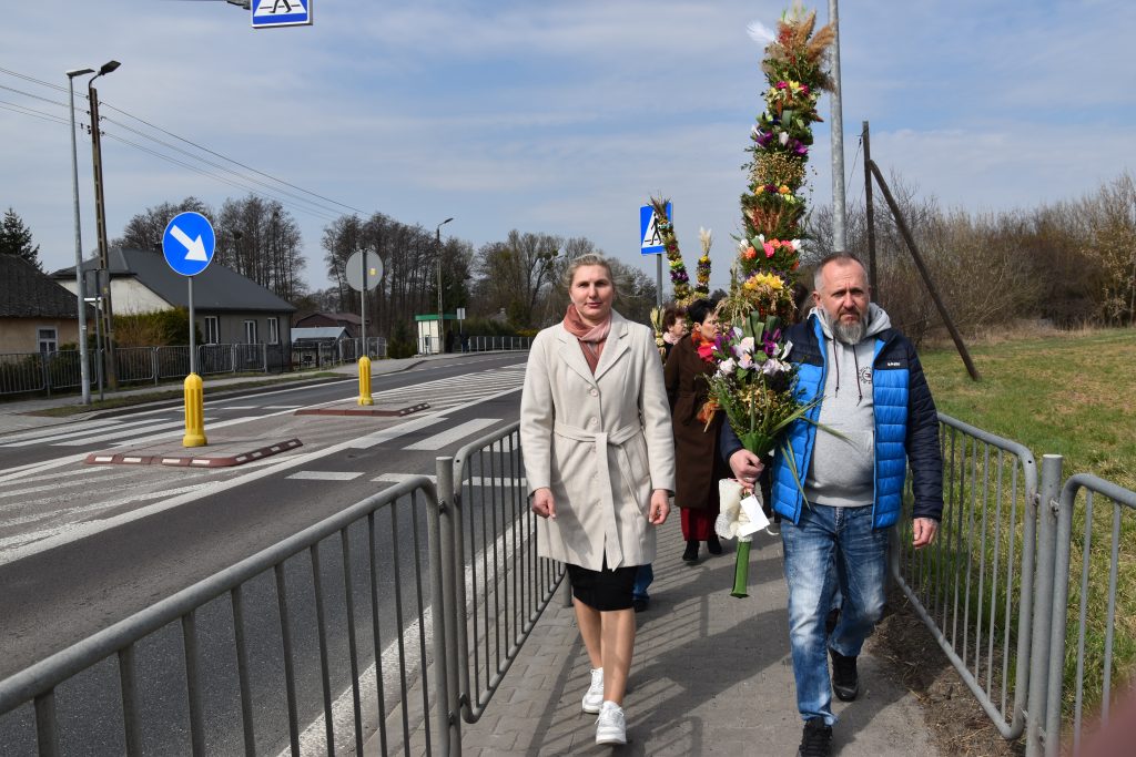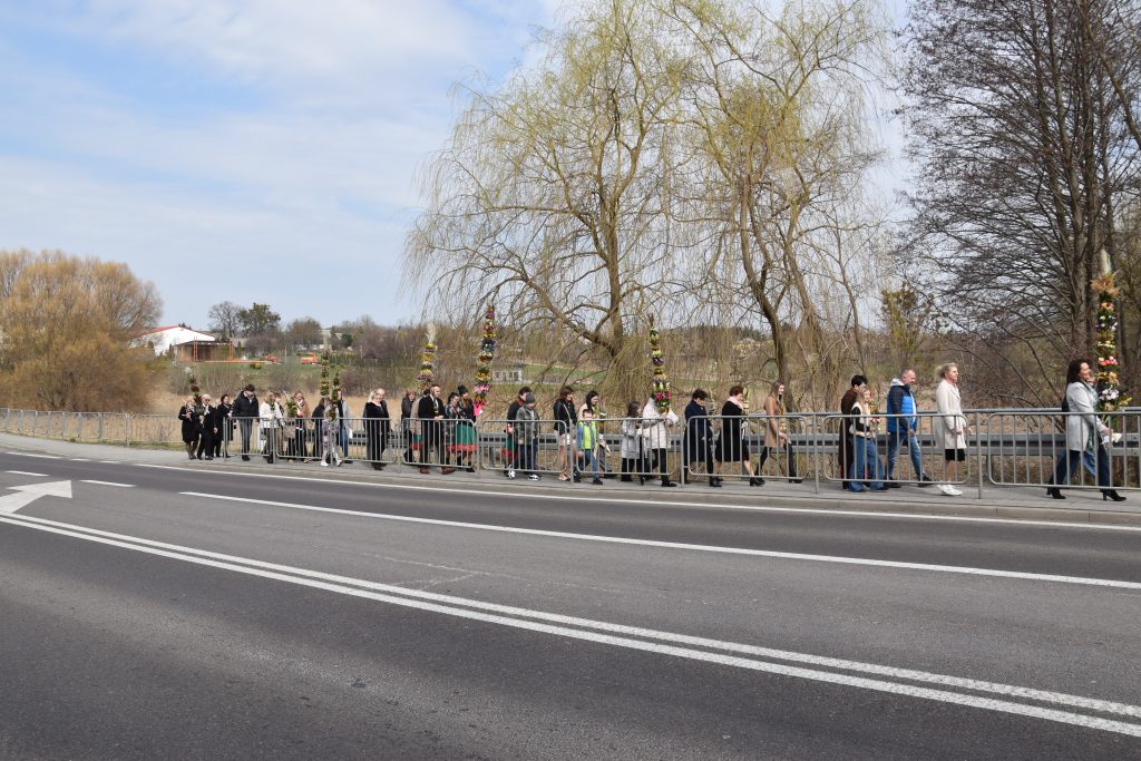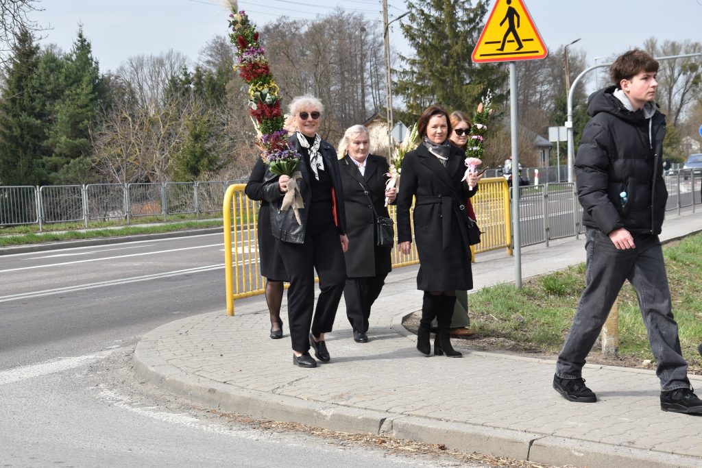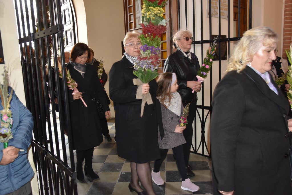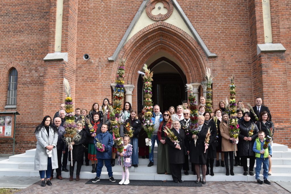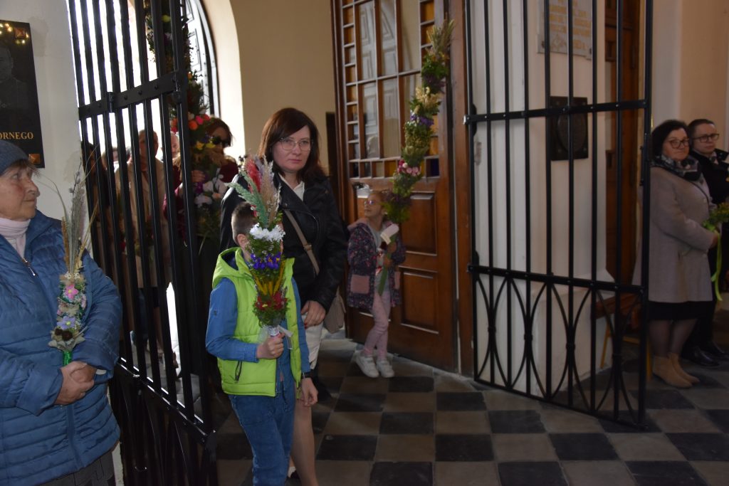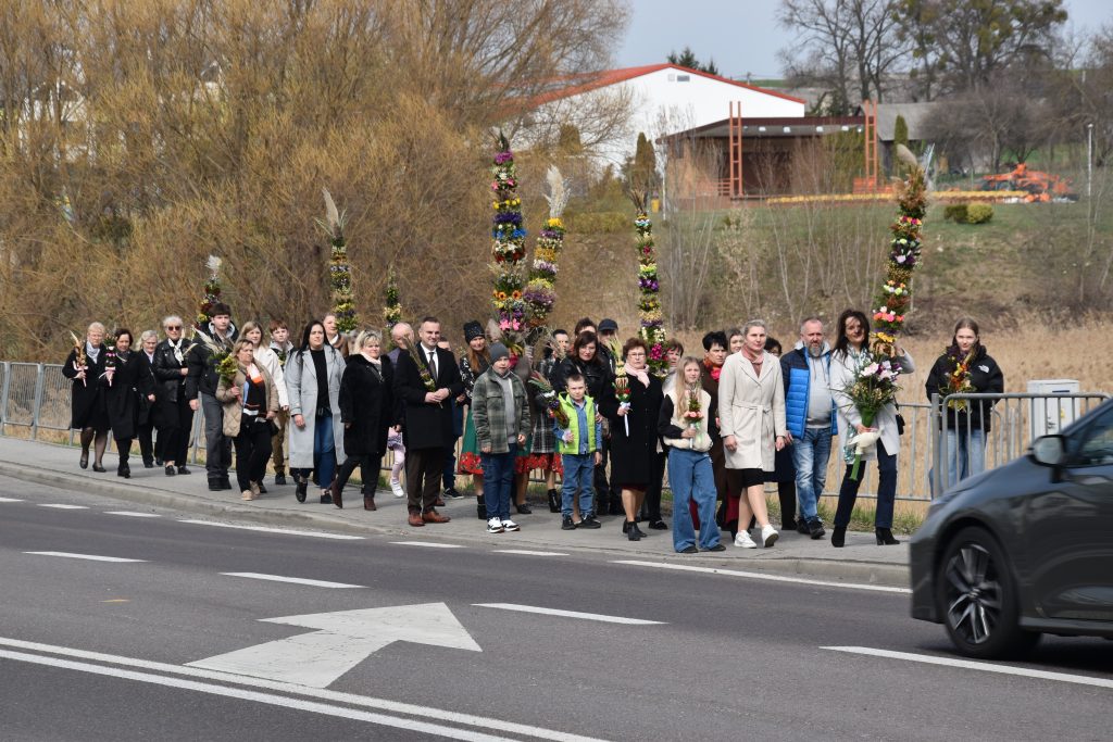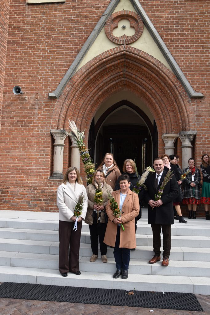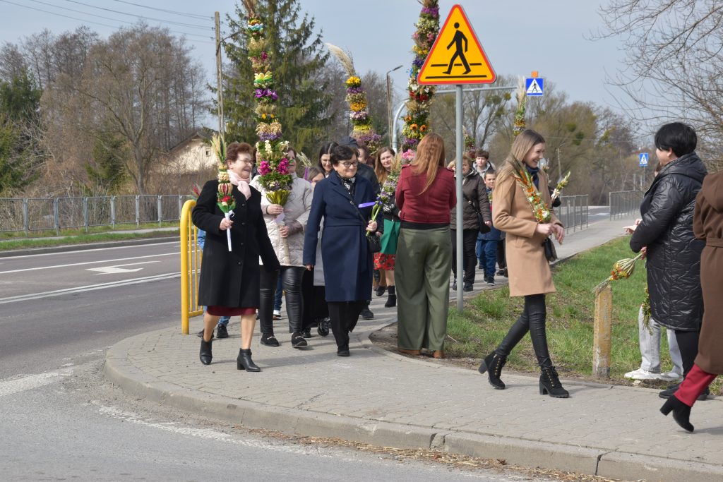 spod Gminnego Ośrodka Kultury w Łopienniku Górnym wyruszył uroczysty przemarsz z wykonanymi palmami do kościoła parafialnego pw. św. Bartłomieja Apostoła. Tam odbyło się ich poświęcenie oraz uroczyste wprowadzenie do świątyni.