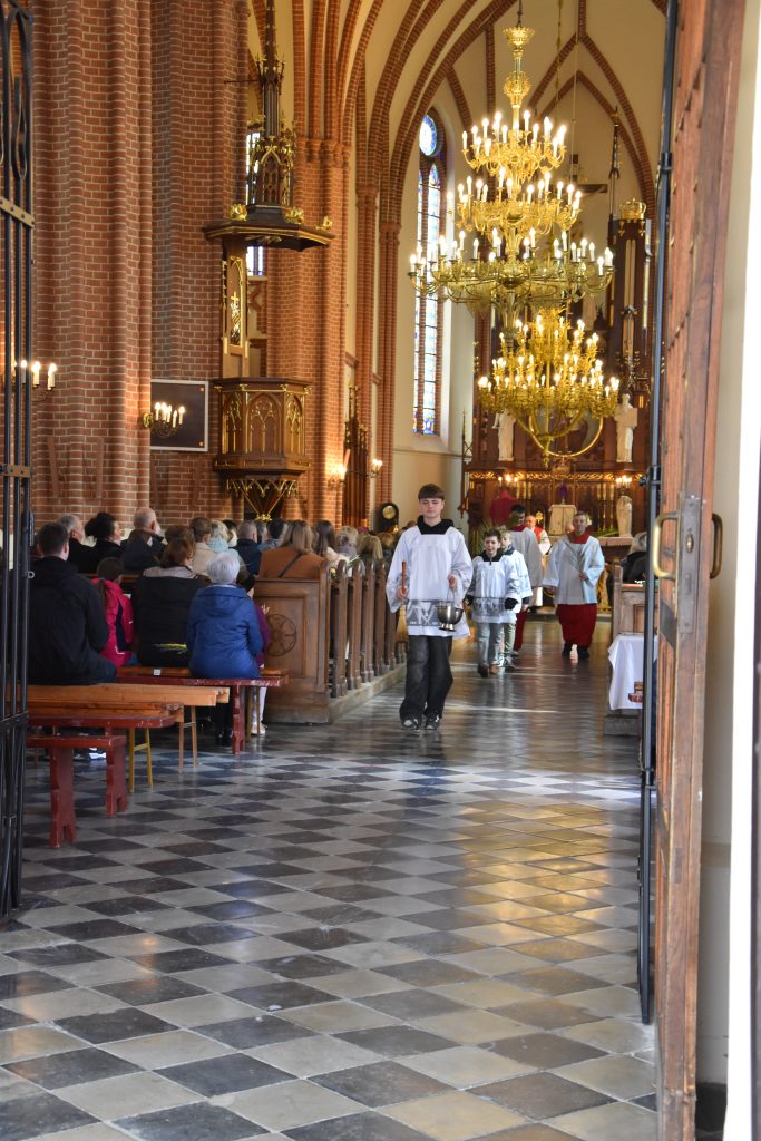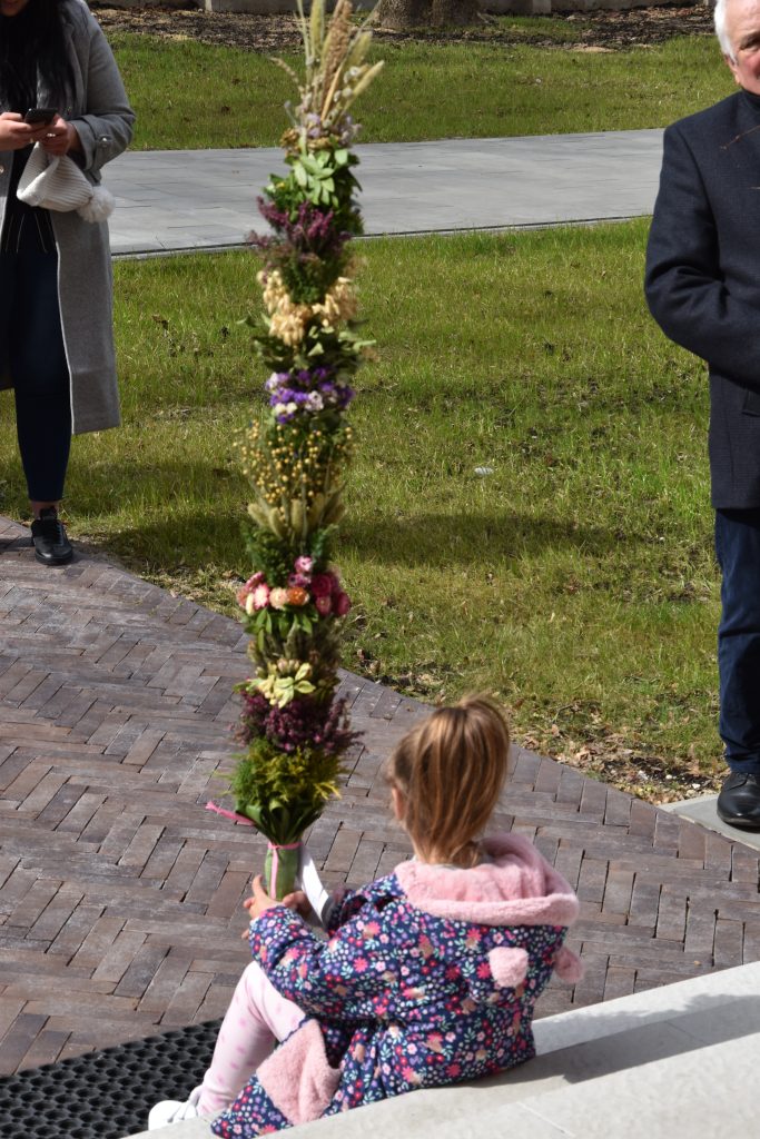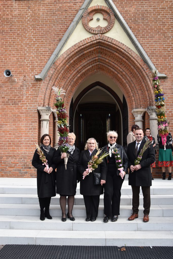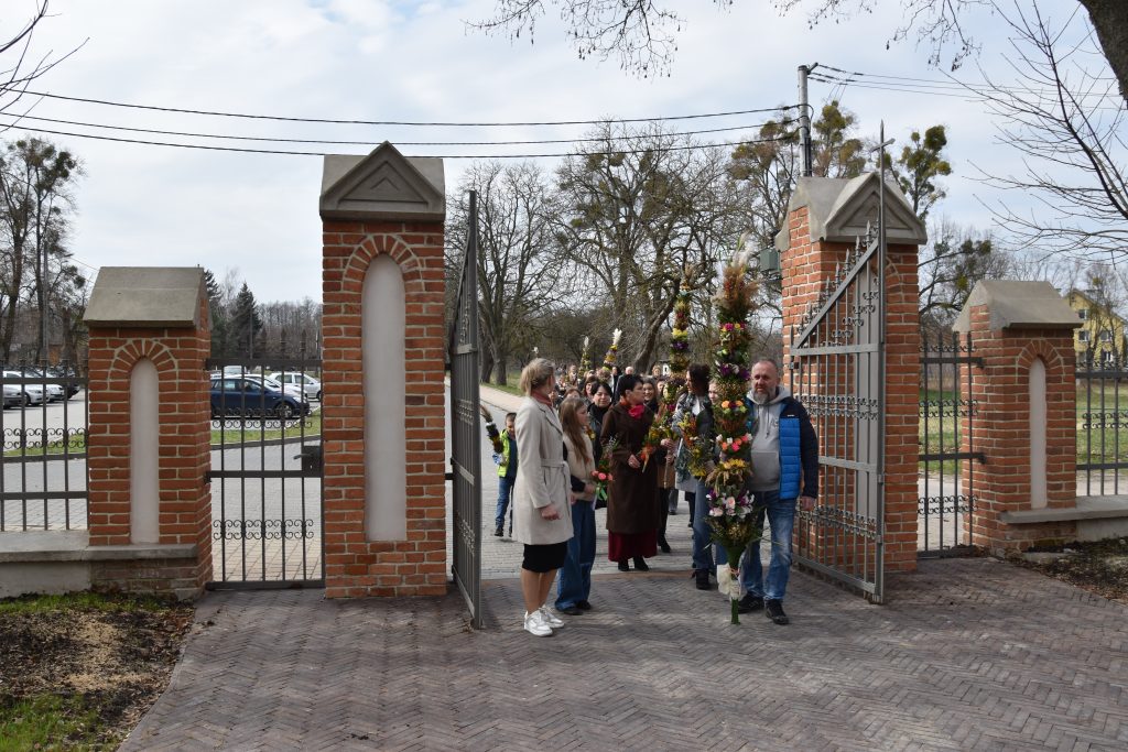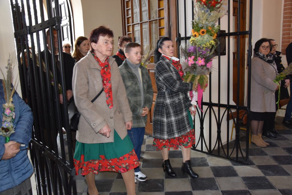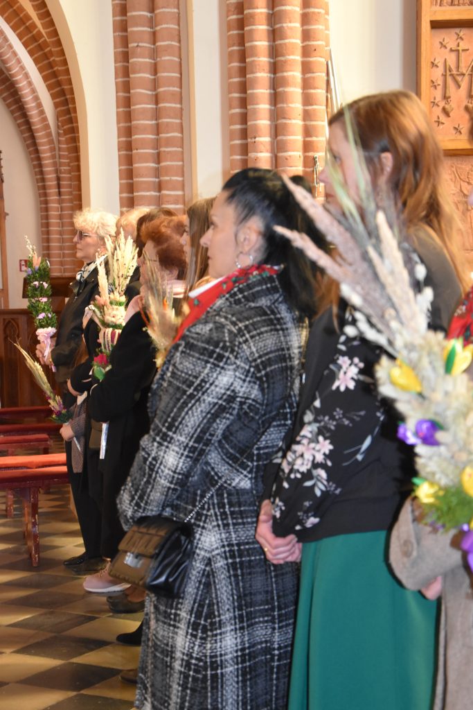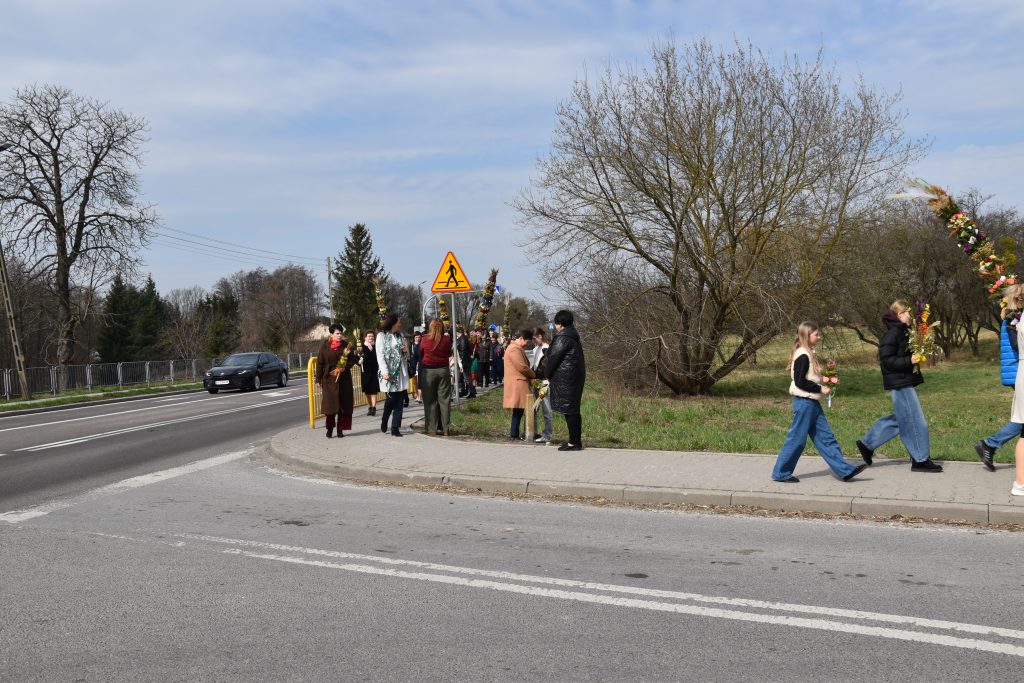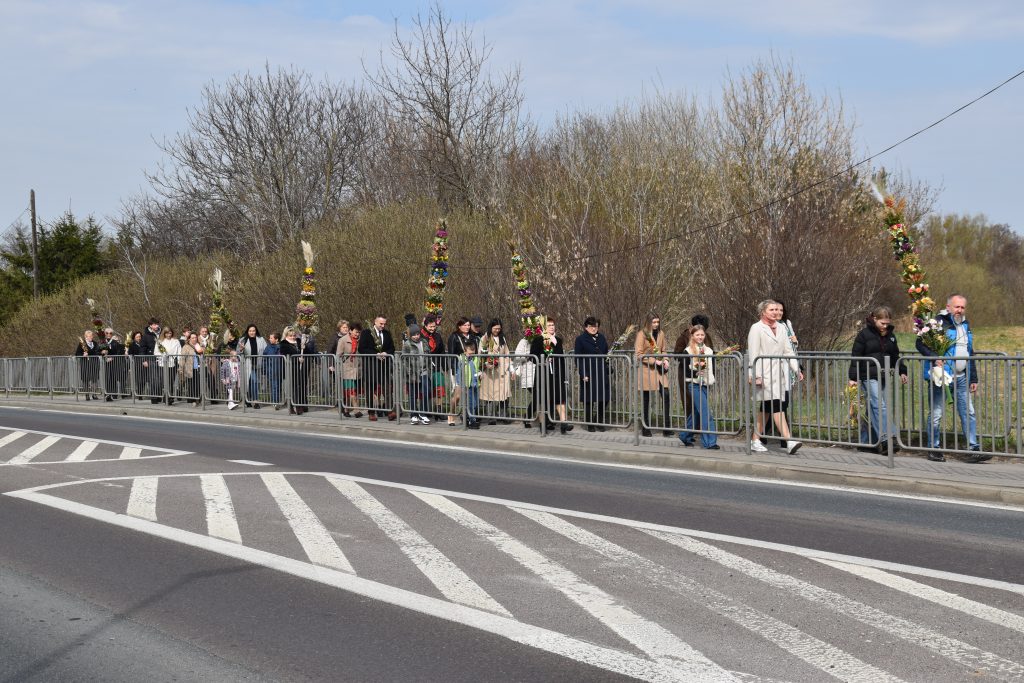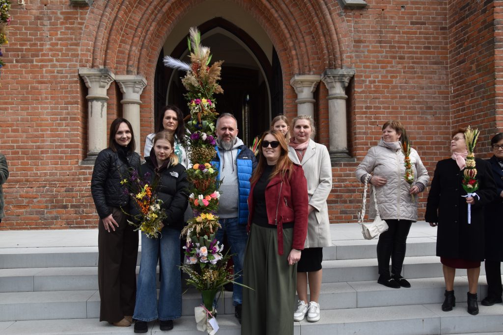 spod Gminnego Ośrodka Kultury w Łopienniku Górnym wyruszył uroczysty przemarsz z wykonanymi palmami do kościoła parafialnego pw. św. Bartłomieja Apostoła. Tam odbyło się ich poświęcenie oraz uroczyste wprowadzenie do świątyni.